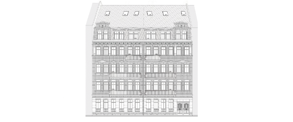 Das Objekt ist in einer für Leipzig typischen Bauweise erbautes Mehrfamilienhaus mit einer traditionell verzierten Fassade.