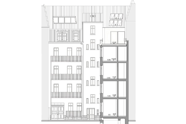 Das Gebäude wurde Ende des 19. Jahrhunderts errichtet. Es handelt sich um ein 4-geschossiges Haus mit Geschoßhöhen von ca. 2,50 m bis 2,90 m, voller Unterkellerung und einem halbseitig ausgebauten Dachgeschoss.