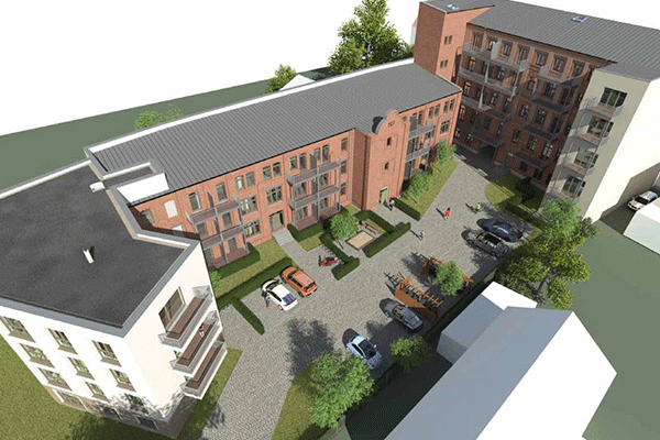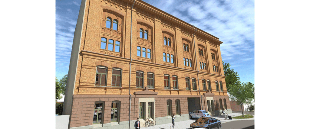 Es entsteht ein Mehrfamilienhaus für Jung und Alt mit insgesamt 52 Wohneinheiten. Die geplanten Baumaßnahmen werden nach den Vorgaben des KfW-Effizienzhaus Denkmal umgesetzt.