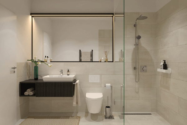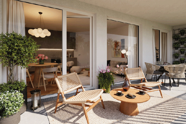 Alle Einheiten verfügen über Balkone oder Terrassen, die den Wohnraum nach außen erweitern und zusätzlichen Wohnwert schaffen, unterstützt durch große, teils bodentiefe Fensterflächen, die für ein helles, freundliches Wohngefühl sorgen.